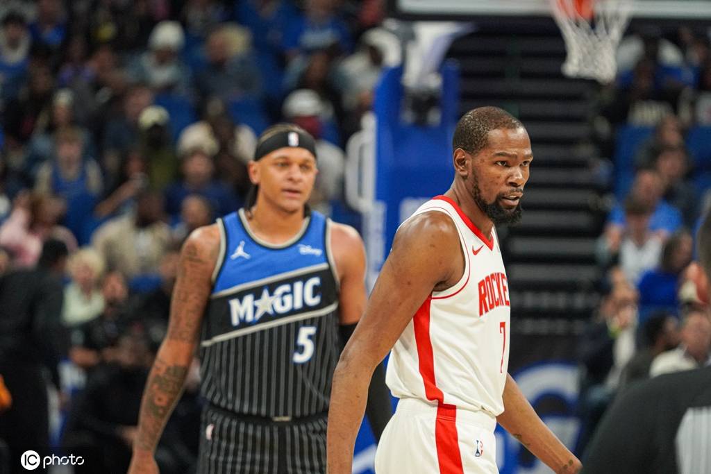 火箭队首发:凯文-杜兰特、阿尔佩伦-申京、小贾巴里-史密斯、阿门-汤普森、塔里-伊森