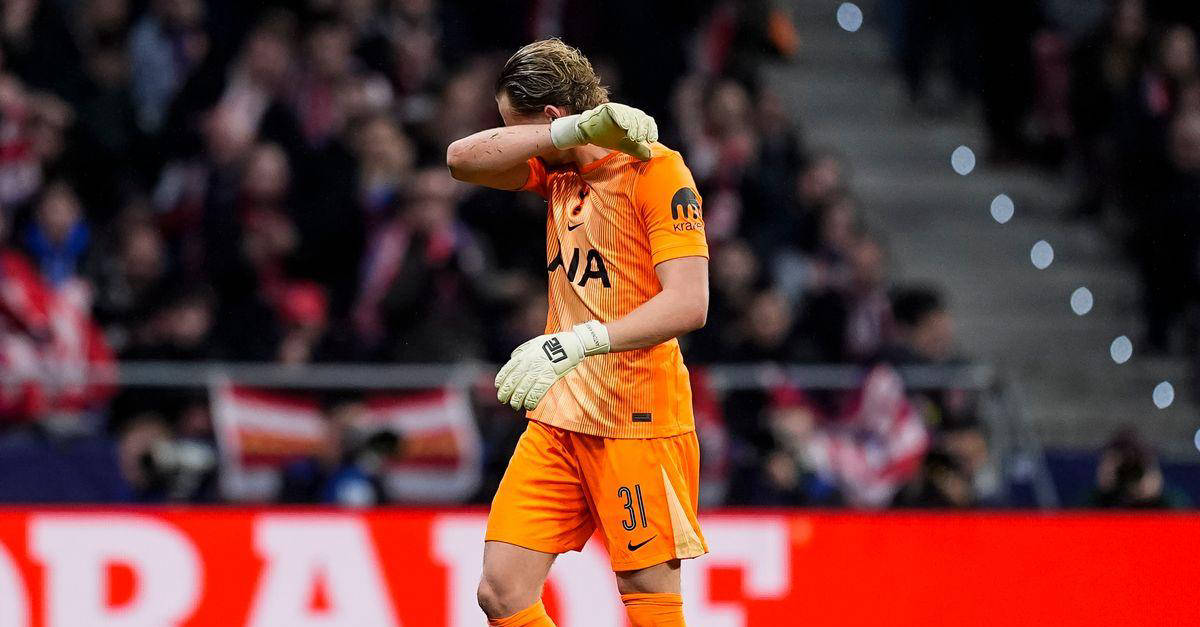 比赛可以说是一场彻底的崩盘:第6分钟,马科斯·略伦特率先破门;紧接着安托万·格列兹曼扩大战果;解围不当的第15分钟,阿尔瓦雷斯补射成功,将比分锁定为0-3。随即图多尔派上维卡里奥救场,可惜他登场不久后,热刺大门再度告破,比分进一步扩大到0-4。前热刺门将乔·哈特在TNT体育评论时表示:“我很难理解这种局面,看到这孩子状态如此糟糕真的令人揪心。那14分钟内他滑倒失误,尤其是第三球丢得太离谱,我为他深感难受。整个队伍都乱了套。”